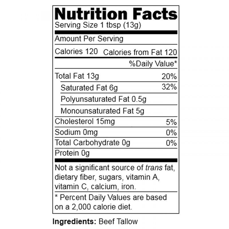 100% Pure Beef Tallow: No Additives, Hormones, Antibiotics or GMO’s.